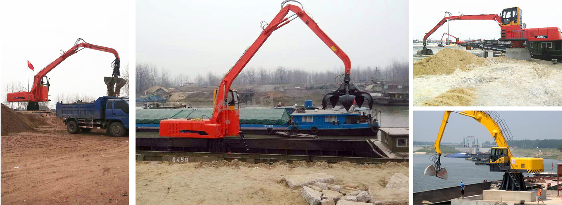 金山定式抓料機(jī)是在挖掘機(jī)的基礎(chǔ)上研發(fā)的一機(jī)多用型專用抓料設(shè)備,主要服務(wù)于:船運(yùn)碼頭,物料貨場,車站煤場,堆卸吊裝等工況條件下的沙石、煤料、鋼材各種散裝貨物及堆裝貨物的裝卸運(yùn)輸工作。