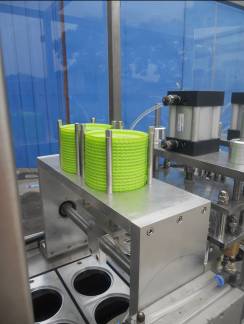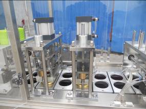 杯盒灌裝封口機(jī)從送杯、充填、液位控制、放蓋、兩次封口、推杯、輸送為全自動(dòng)作業(yè)。