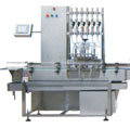直線式四頭液體稱重灌裝機(jī)經(jīng)過稱重式灌裝技術(shù),能夠加快生產(chǎn)流程,當(dāng)操作人員設(shè)定好灌裝規(guī)格后,灌裝容器將會(huì)被輸送到灌裝閥口處,在檢測(cè)到容器口時(shí),直線式四頭液體稱重灌裝機(jī)的四個(gè)灌裝頭將同時(shí)下降至容器底部。高精度的稱重器開始工作,此時(shí)開始實(shí)時(shí)檢測(cè)容器內(nèi)的重量變化,灌裝頭以設(shè)定的流速開始向著容器內(nèi)開始注入液體,在接收到與參數(shù)相匹配的重量值時(shí),灌裝頭迅速關(guān)閉,停止灌裝。隨后,被輸送離開灌裝工位。